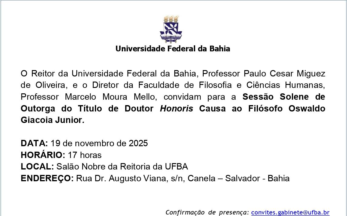 Convite: Sessão Solene de Outorga do Título de Doutor Honoris Causa ao Filósofo OSWALDO GIACOIA JUNIOR